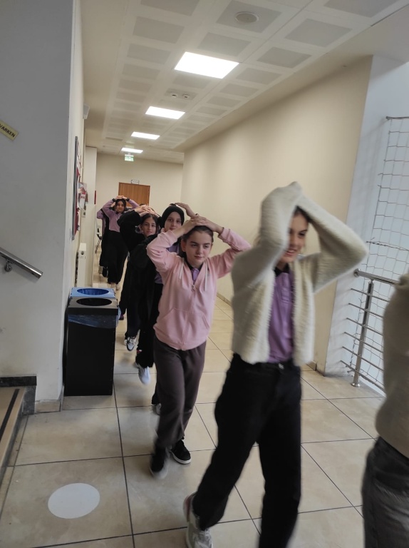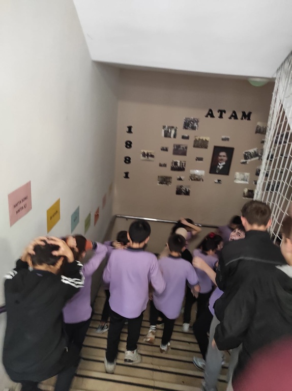 Millî Eğitim Bakanlığı tarafından yürütülen "Yeşil Vatan - Benim Okulum Geleceğe Çare" etkinlikleri kapsamında, 2025-2026 eğitim öğretim yılı tematik takviminde Ekim ayı "Afetler ve Dayanıklılık Ayı" olarak belirlendi. Bu nedenle okulumuzda afetlere arşı farkındalığı artırmak ve acil durumlarda nasıl hareket edilmesi gerektiğini öğrencilerimize kavratmak amacıyla etkinlikler düzenlendi. Sınıflarda tatbikat eğitim videoları izlendikten sonra öğrenciler tahliye tatbikatı gerçekleştirildi.
